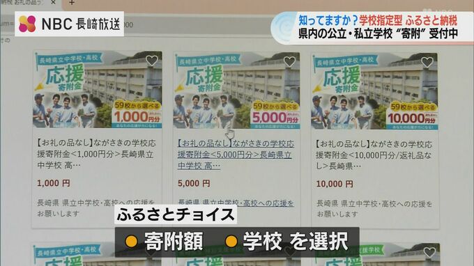 寄附はふるさと納税サイト「ふるさとチョイス」から、寄附額と学校を選択して行います。