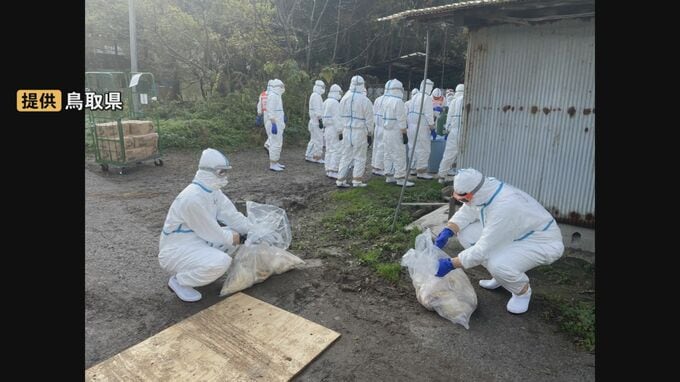 簡易検査で鳥インフルエンザ陽性が出たことから精密な遺伝子検査が進められていましたが、2日朝、H5亜型の高病原性鳥インフルエンザの感染と結果が判明。これを受けて、鳥取県は午前8時から7万5000羽のニワトリの殺処分に入りました。