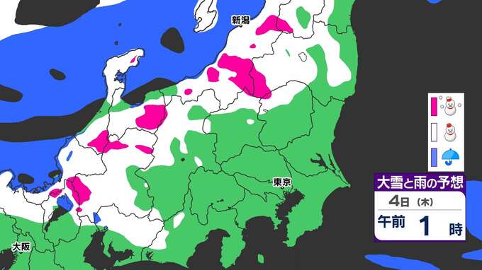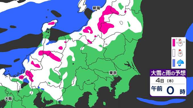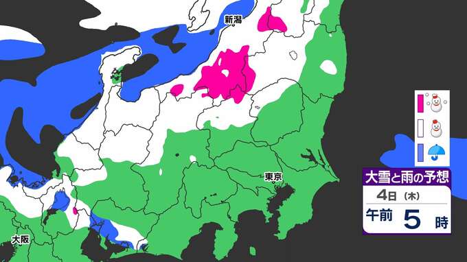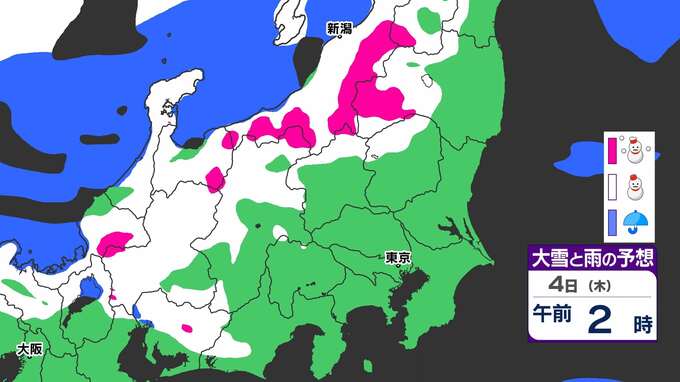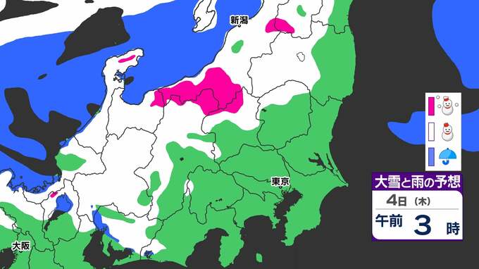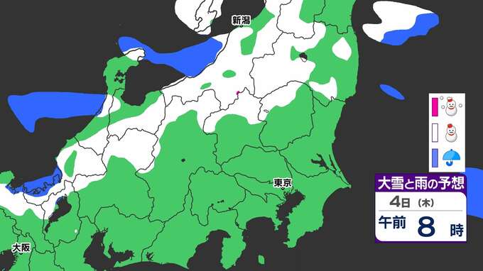 3. 【大雪情報】関東北部50センチ 甲信40センチ 「3日(水)夜から大雪のおそれ」【雪と寒気のシミュレーション3日(水)~5日(金)】気象庁「大雪情報」東京・神奈川・埼玉・千葉・群馬・茨城・栃木・山梨・長野