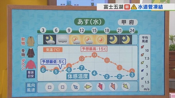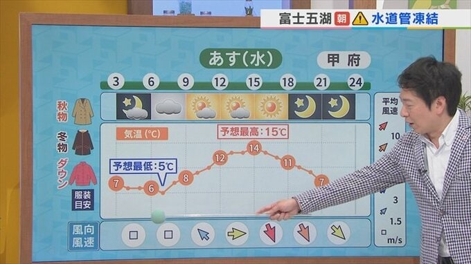 ですのでこの数字だけ見れば15℃だと結構温かいかなと思いがちですが、もうダウンがあってもいいぐらいの寒さ。あすは夜の方が朝よりも気温が下がりますので、風を通しにくい服装がおすすめです。
