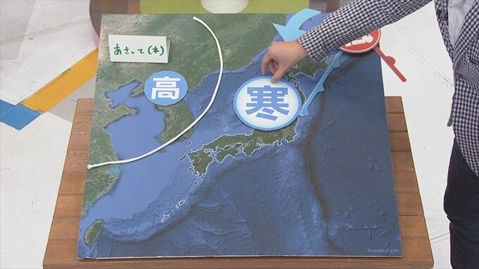 低気圧というのは反時計回りに風が吹くので冷たい空気=換気が北の方から南の方へ南下してくる。つまりこれによって寒さが増すということなんです。