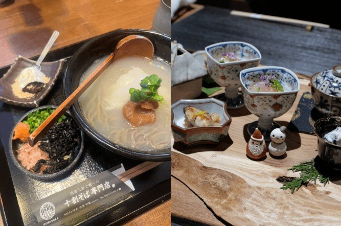 食事の写真も充実しており、そばや、様々な小鉢に彩られた和定食の盛り合わせなど、地元の味を堪能した様子がうかがえます。君島さんは「海鮮もとっても美味しかった (次回はスサノオラーメンもたべたい)」と綴り、出雲のご当地ラーメンにも、興味を示しています。