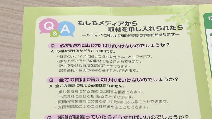 ・犯罪被害者には権利があります。 「必ず取材に応じなければいけないのでしょうか?」「いえ、取材を受けるかどうかは自由です」。私たち被害者は特定のメディアに限って取材を受けることもできます。