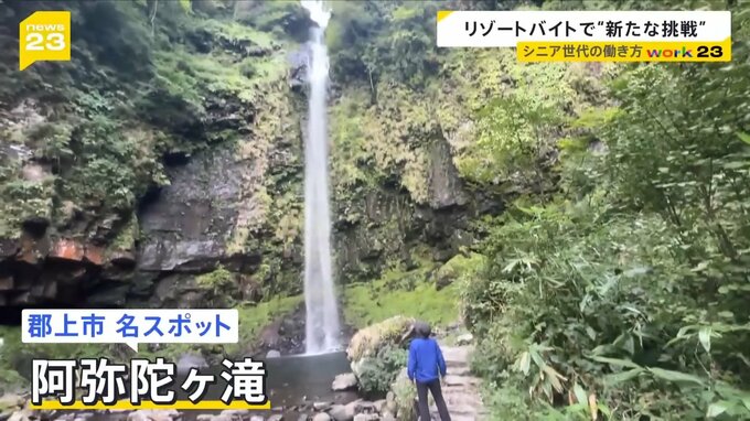 続いて、訪れたのは町の名スポット「阿弥陀ヶ滝」。落差約60m、東海一の名瀑として知られています。
