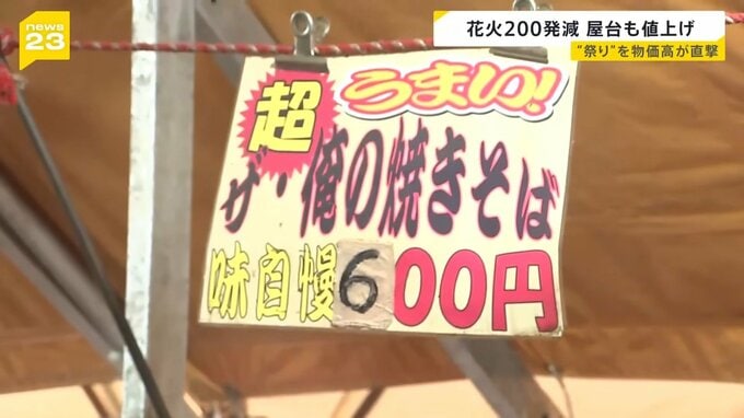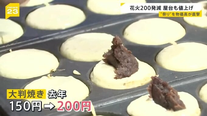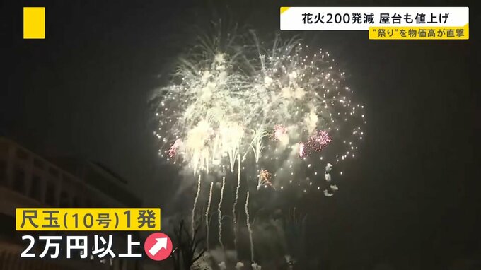 恒例の打ち上げ花火は2024年から200発減っています。原料の火薬の高騰で、尺玉1発の値段がここ2年で2万円以上値上がりしているといいます。