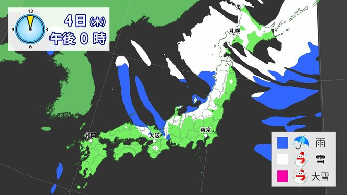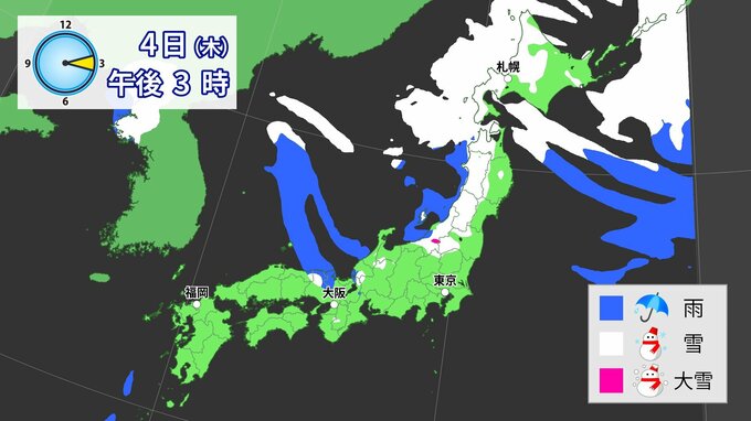 【雪情報】関東甲信地方上空約5500mには氷点下30度以下のこの時期としては強い寒気が流れ込む見込み 長野県と関東地方北部は3日夜~4日は大雪となる所も…【雪と雨のシミュレーション】|TBS NEWS DIG