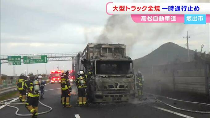 「トラックが燃えている」高松道(下り)坂出JCT付近で火災 坂出IC→坂出JCTが一時通行止め「トラックは静岡から愛媛・新居浜市へ移動中」【現場の画像】 RSK山陽放送 2025年12月3日(水) 21:46 国内 【高速道路で全焼したトラックを見る】 【火災の概要を読む】一体何が?「車両の後方から火が」
