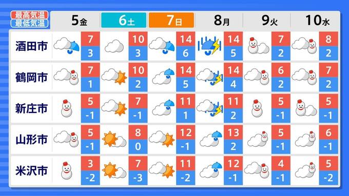 【台風のたまご=熱帯低気圧】発生 12月に台風発生か? 一方日本は「爆弾低気圧」通過で「冬の嵐」【雨風シミュレーション4日(木)~13日(土)/ 全国各都市の週間予報】 南日本放送 2025年12月3日(水) 13:00 国内 天気 週間予報(12月10日(水)まで) 全国各地の10日(水)までの週間予報を画像で掲載しています(各県5か所ずつ)。3日(水)~4日(木)は日本海側を中心に大雪が予想されていますので、 最新の大雪情報に注意しましょう。 13日(土)までの《雨風シミュレーション》・《全国各都市の週間予報》を画像で掲載しています。