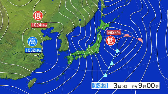 日本付近は急速に発達する低気圧、いわゆる「爆弾低気圧」が通過中で、4日(木)にかけて荒れた天気となっています。「台風並みの暴風・大雪」をもたらすおそれがあるため注意が必要です。