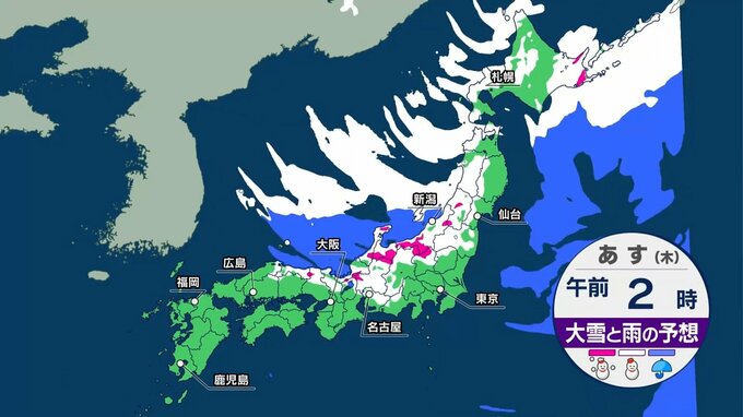 ▼きょう(3日)~4日(木)の雪・雨予想シミュレーション