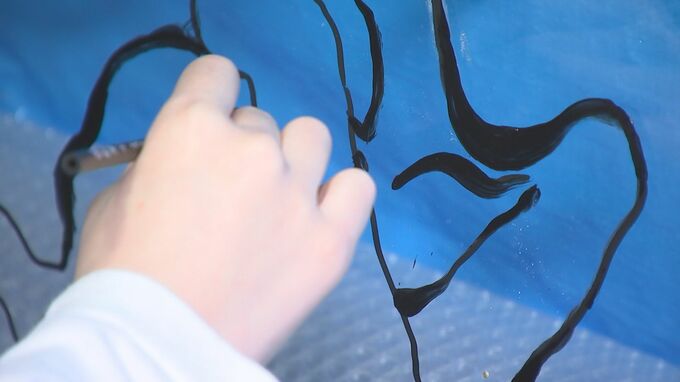 竹安さんが絵を描いているのはキャンバスではなく、なんとガラスです。