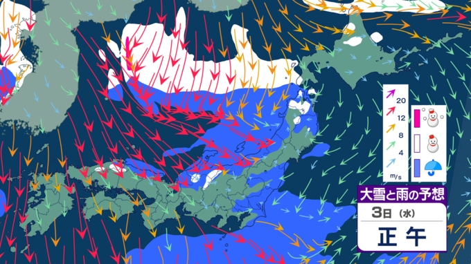 3日は東北地方を気圧の谷が通過し、次第に強い冬型の気圧配置となるでしょう。強い冬型の気圧配置は5日にかけて続く見込みです。また、東北地方の上空約5000メートルには、氷点下36度以下の寒気が流れ込むでしょう。