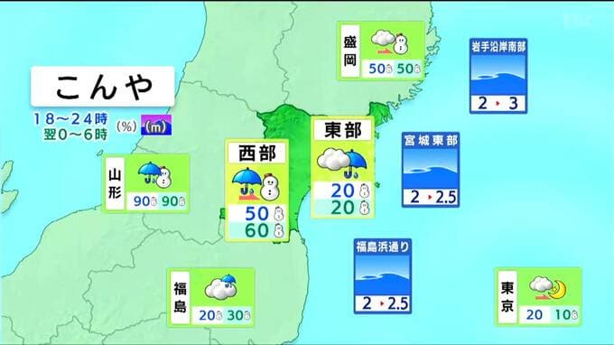 東部の雨は次第ににやんできますが、西部では雨が標高の高い地域から雪に変わるでしょう。海上では暴風警報が出される可能性もあります。