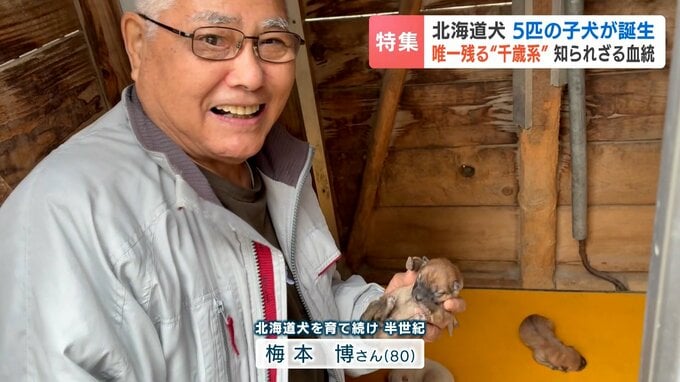 飼い主は、梅本博さん80歳。札幌市で北海道犬を育てて半世紀が経ちました。