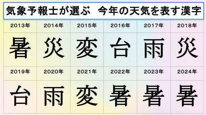 全体的に「暑」いが目立つ1年でしたが、4年連続「暑」という漢字が選ばれるのでしょうか?それとも違う漢字が選ばれるのでしょうか?発表は今月7日です。