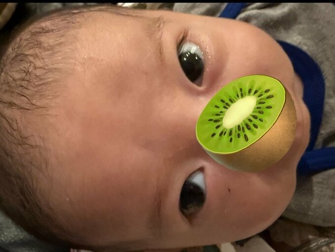 続けて、ママを見つめる画像を添えて、「弟キウイくんもママを見る見る」「二人ともママを見る見る!」と、独特の言い回しで愛らしい様子を綴っています。