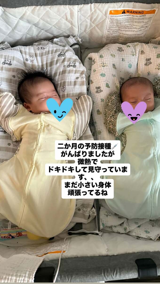 中川さんは「双子たち 2か月の予防接種 がんばりました」と投稿。副反応なのかは定かではありませんが、「微熱があったので見守っています」ということです。