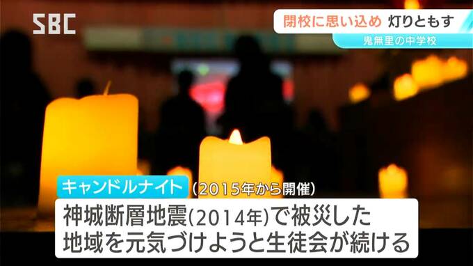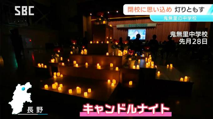 来年度末で閉校する長野市の中学校で、地域を元気に、笑顔にしようと願いを込めたキャンドルイベントが開かれました。