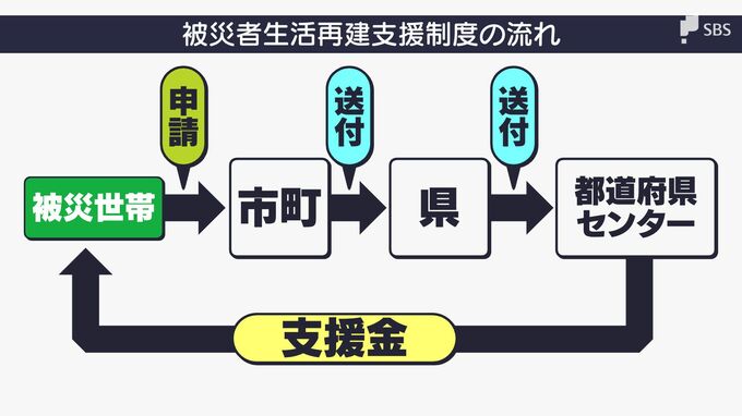 いまだ入金されていない世帯もある被災者生活再建支援金ですが、書類を申請した後、市町の確認作業、県の確認作業を終え、都道府県センターでの最終審査があり、支給される流れになっています。