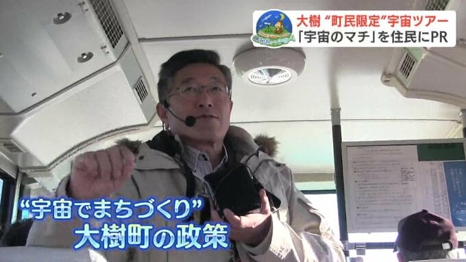 宇宙でマチづくりを進めるマチの政策を理解してもらおうと、黒川豊町長自らガイドを買って出ました。