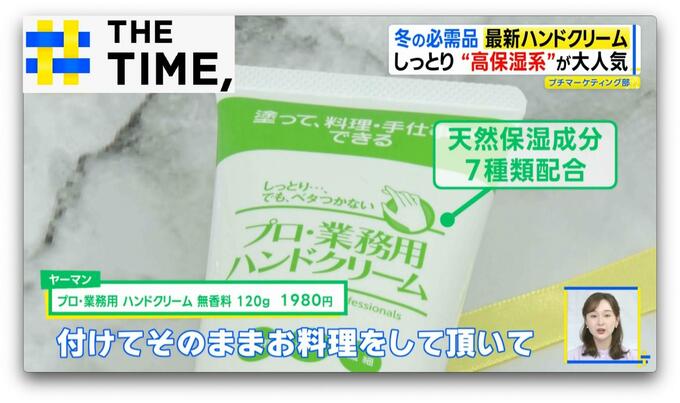 ハンズ広報部・青木さんが「大変人気のシリーズ」と話すのは、しっとりしているのにべたつかない使用感を実現した「プロ・業務用 ハンドクリーム 無香料」(ヤーマン/120g・1980円)