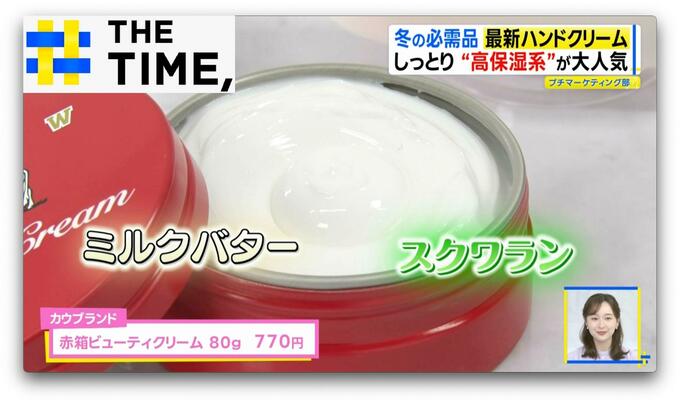 中でもいま一番人気だというのは、牛乳石鹸・カウブランドの「赤箱ビューティクリーム」(80g・770円)
