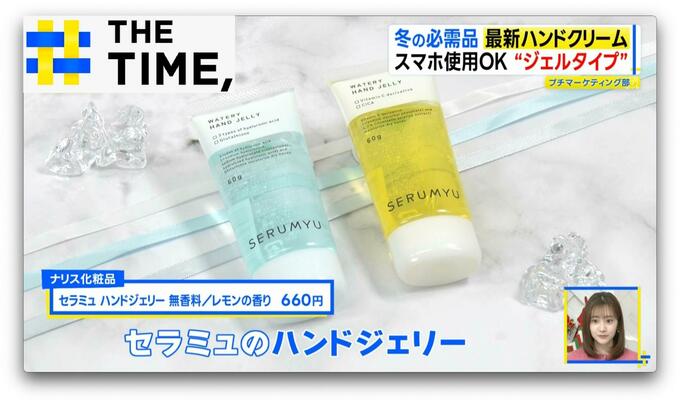 さらに保湿系の中でも話題になっているのが、“ジェルタイプ”のハンドクリーム「セラミュ ハンドジェリー 無香料/レモンの香り」(ナリス化粧品/60g・660円)です。