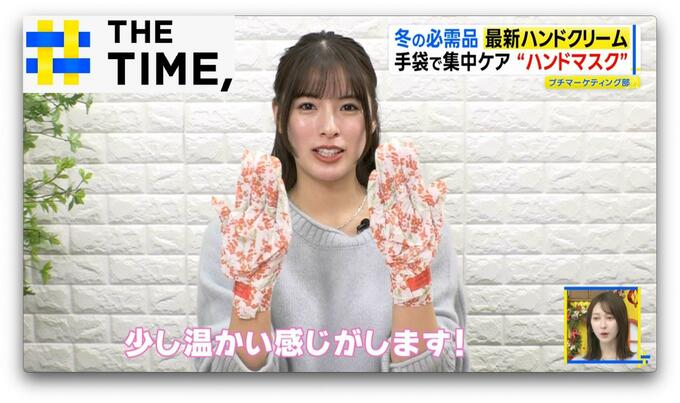 手全体を覆っての入念ケア。20分つけておくだけで、「すごくしっとり。これは芯から保湿されてる感じがある」と、ゆい部員も驚いた様子です。