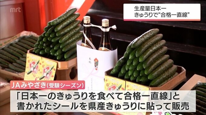 生産量日本一を誇る県産野菜で、受験生を応援します。まっすぐな形から合格に向け一直線に進んでほしいと思いを込めて「きゅうり」の合格祈願が行われました。JAみやざきは毎年、受験シーズンに合わせてまっすぐな…