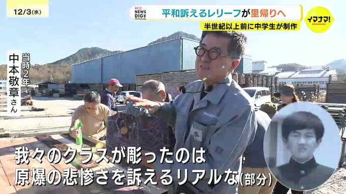 「いのちの叫び」と名付けられたレリーフは、12月23日に、母校の廿日市中学校に寄贈されることになっています。