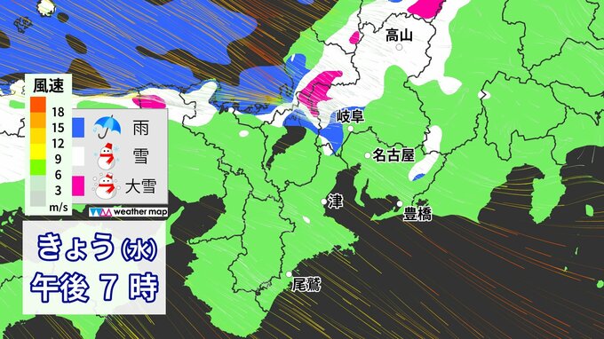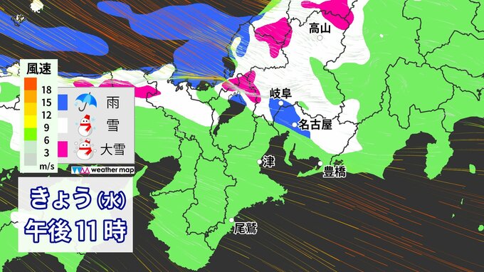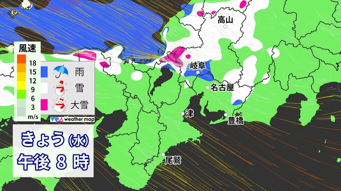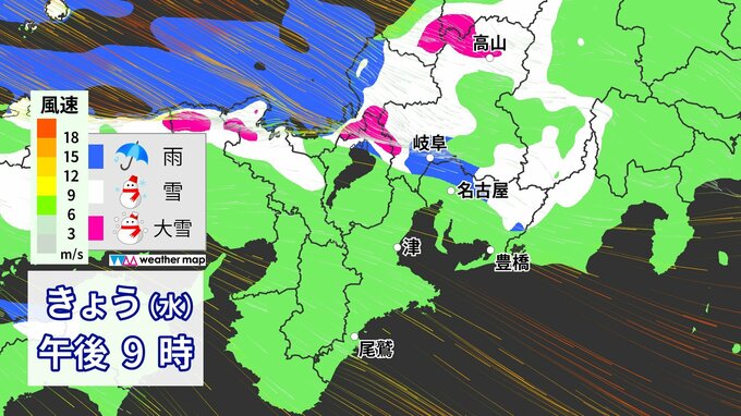 飛騨地方では、日中は一時的に雪が止むところもありますが、夕方以降は飛騨地方を中心に岐阜県内で再び雪が降る予想です。