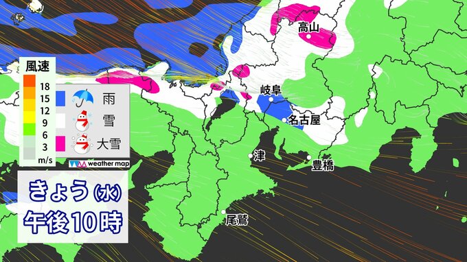 明日の朝には、平野部から次第に天気は回復してくる見込みですが、朝の冷え込みが強く、名古屋の最低気温は2°C、高山では-2°Cと、東海地方の多くの地域で“今季一番の冷え込み”となるところが多いでしょう。