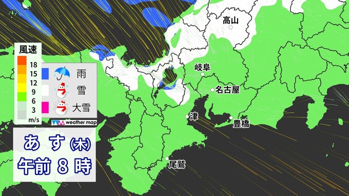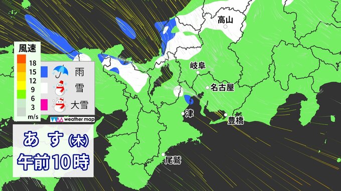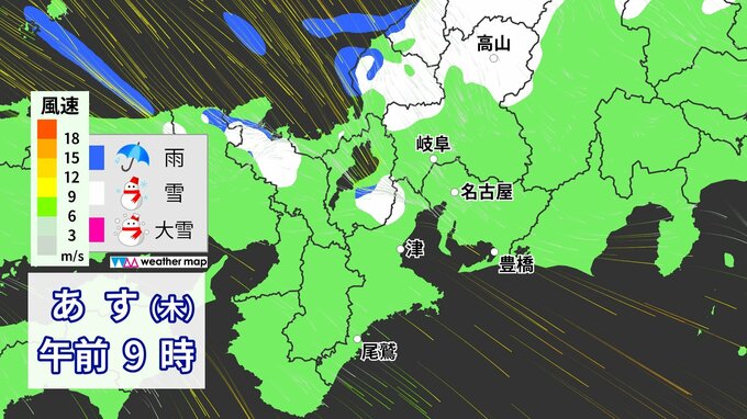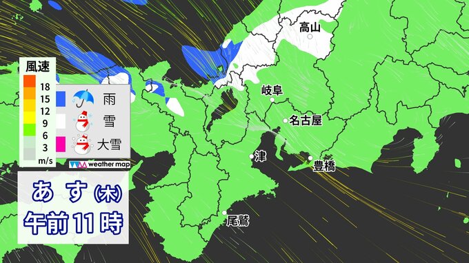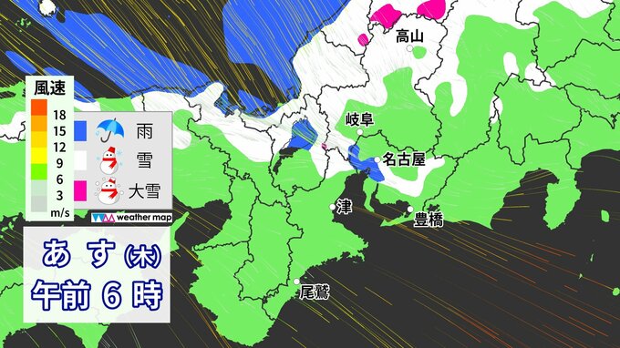 3. 【雪情報】今夜~あすにかけて名古屋でも“初雪”か 冬型の気圧配置が強まり広い範囲で雨・雪予想 いつどこで降る?愛知・岐阜・三重 最新のシミュレーション
