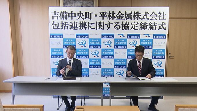 吉備中央町が協定を結んだのは、リサイクル業やプロスポーツチームの運営などを行う平林金属です。協定では、防災やスポーツ教育などの分野で、平林金属が町に人材を派遣することなどが取り決められました。また、おととし(2023年)、発がん性が指摘されている有機フッ素化合物=PFASが町内で高濃度で検出されたことから、川の水質の改善などにも共同で取り組みたい考えです。