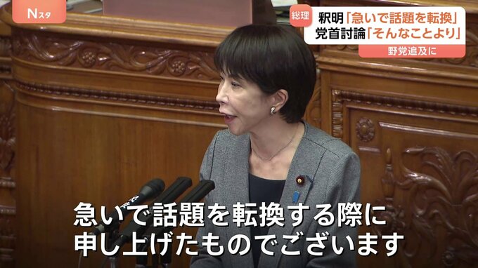 高市総理は国会で、企業・団体献金をめぐる議論の中で「そんなことより議員定数の削減をやりましょう」と発言したことについて「議論の優先度合いを示す趣旨ではない」と釈明しました。きょうの国会、野党が追及し…