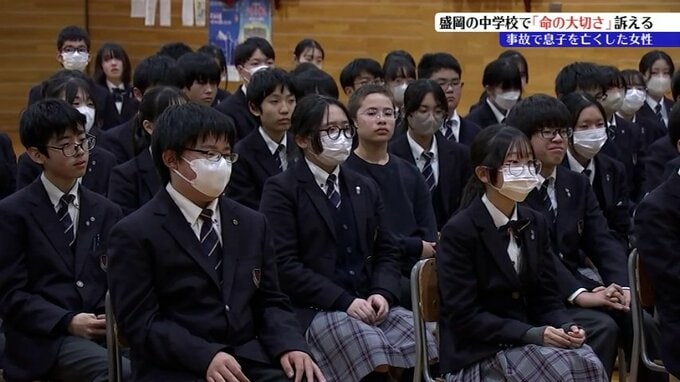 22年前、当時6歳の息子を交通事故で亡くした女性が盛岡市の中学校で講演し生徒たちに命の大切さを訴えました。