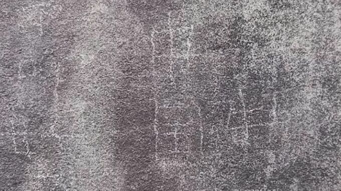 国の史跡、高松城跡の天守台の石垣に落書きが見つかりました。見つかった落書きです。横15センチ、縦20センチの範囲で、石材の表面を削って文字が刻まれていて、「中国」「日本」などと読み取れます。高松市文化財…