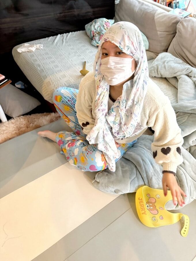バービーさんは、ベッド上でマスクをして、茫然自失とした表情の画像を添えて「珍しく体調を崩してもがき苦しんでおりました。」と投稿。