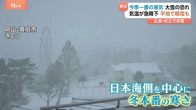 日本付近に今シーズン一番の寒気が流れ込み、きょうは各地で気温が急降下しています。日本海側を中心に、あすにかけ雪の予想となっていて、平地でも積もる可能性があります。関東有数の温泉地、群馬県の草津でも、…