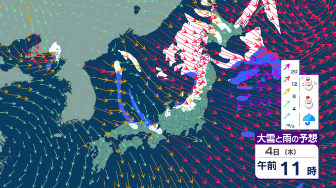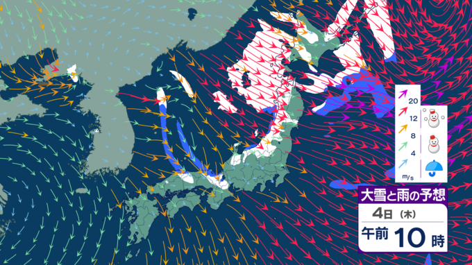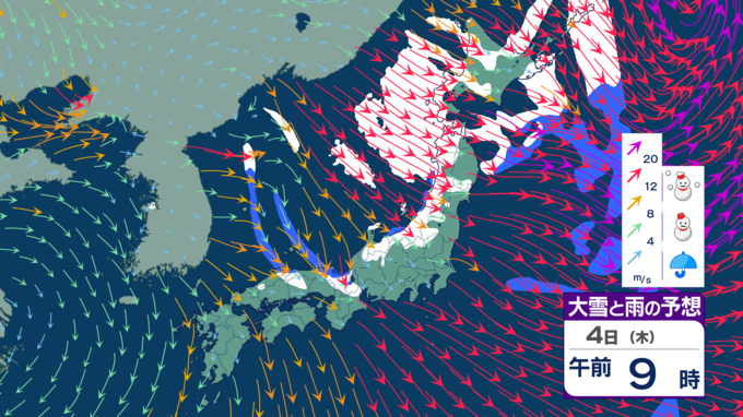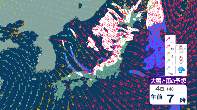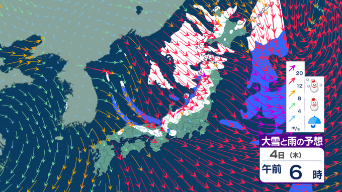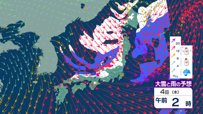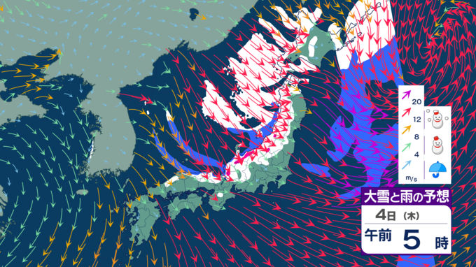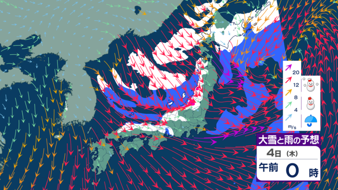【台風たまご発生】12月なのに台風のたまご=熱帯低気圧が日本の南に発生 日本海側は雪風強まり大荒れのところも【雪風シミュレーション】 テレビ高知 2025年12月3日(水) 21:48 国内 天気 明け方に雪のピークか 5日にかけては、西高東低・冬型の気圧配置が続くでしょう。北から寒気が流れ込むため、寒さが強まり、大気の状態が不安定となって各地で雪が降る見込みです。 4日の明け方ごろが雪のピークとなりそうです。