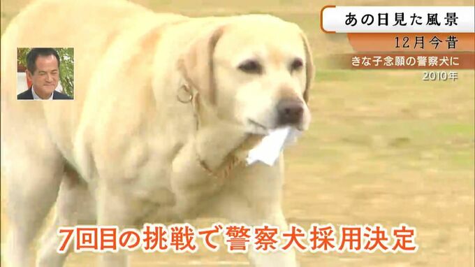 次は2010年高松市の商店街に現れたのはラブラドール・レトリーバーの「きな子」。警察犬としての採用が決まりこの日防犯パレードのゲストとしてデビューしました。警察犬を目指し試験に挑戦するも失敗ばかり。しかし、くじけず何度も何度も挑戦!この年の11月、7度目の挑戦で見事合格しました。