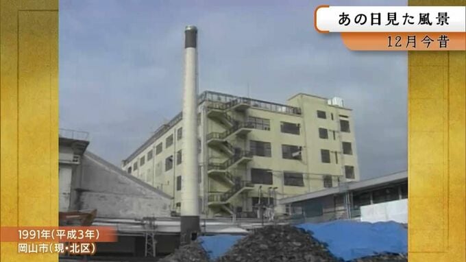 続いて、1991年岡山駅近くにあったあるシンボルが無くなったニュースです。北区下石井の旧カバヤ食品工場にあった巨大な煙突が工場の移転に伴いこの日、撤去されました。