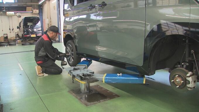 鳥取市内のカーディーラー。11月初めごろから乗用車の冬用タイヤへの交換依頼が増え始めました。