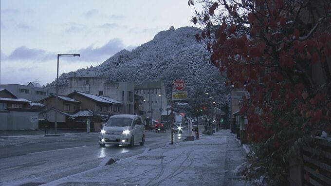 昨夜から断続的に雪が降った岐阜市。平年より10日早い初雪を観測し、けさはシンボルの金華山にうっすらと雪が積もり冬景色となりました。