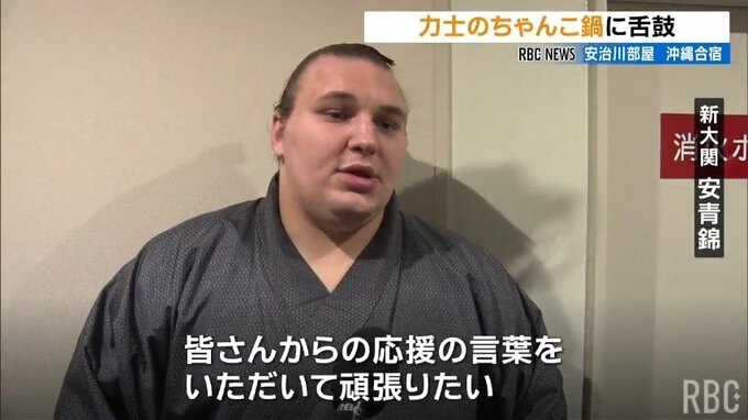 九州場所で初優勝を果たし大関昇進を決めた、ウクライナ出身の安青錦関も所属する大相撲安治川部屋は、先月28日から30日までうるま市で合宿を行いました。