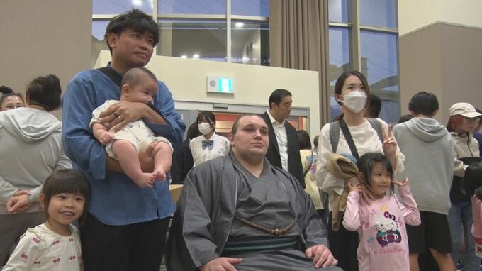 また会場には大関の安青錦関も姿を見せ、記念写真に応じながら沖縄のファンと触れ合っていました。