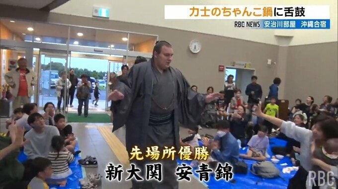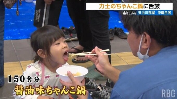大相撲・安治川部屋の力士がうるま市で合宿を行い、子どもたちに本場の「ちゃんこ鍋」を振る舞って地域との交流を深めました。