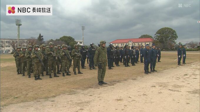 共同実動訓練には長崎県警の機動隊と陸上自衛隊・第16普通科連隊からあわせて120人が参加しました。