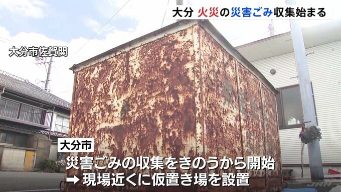 記者「現場の近くには、火災で発生した災害ごみを受け入れるための仮置き場が設置されています」大分市の大規模火災で、災害ごみの収集がきのうから始まり、182棟が焼けた現場近くに仮置き場が設置され、住民が廃…