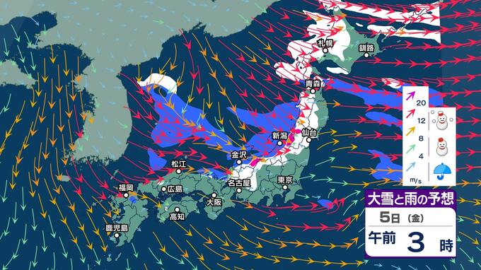 【大雪情報】東北日本海側南部は大雪となっている所が…4日夕方にかけて大雪に警戒 雪を伴った西よりの強い風が吹き海上ではしけに【大雪と雨シミュレーション】 チューリップテレビ 2025年12月4日(木) 12:19 国内 暮らし・マネー 5日(金)大雪と雨シミュレーション